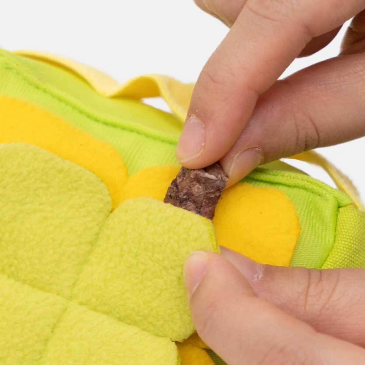 おやつやご飯をポケットに隠して、頭、鼻を使って探し当てるおもちゃです。