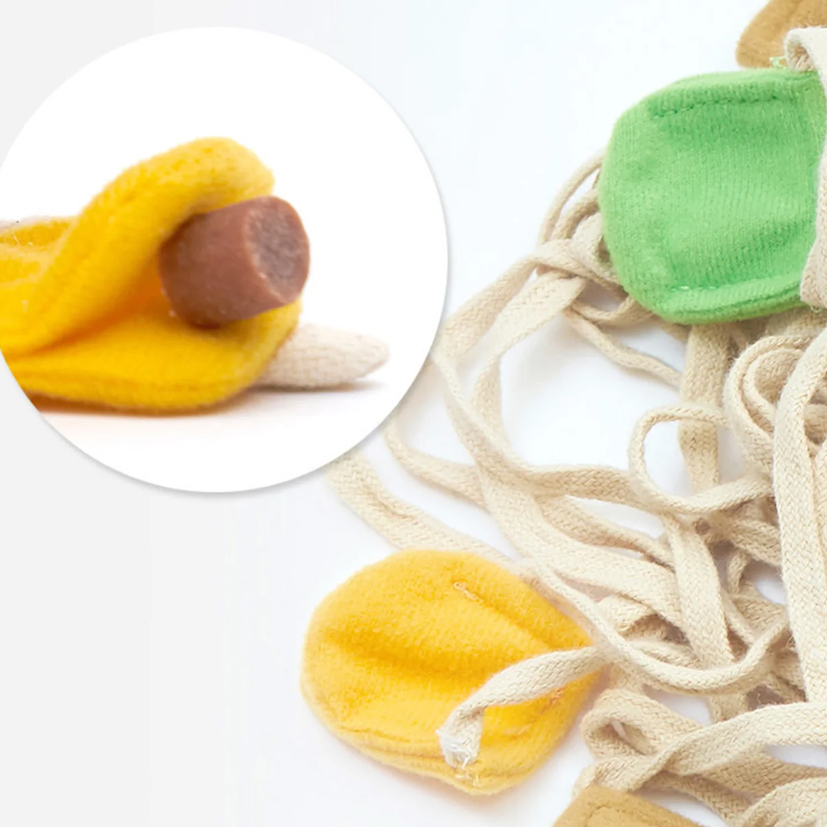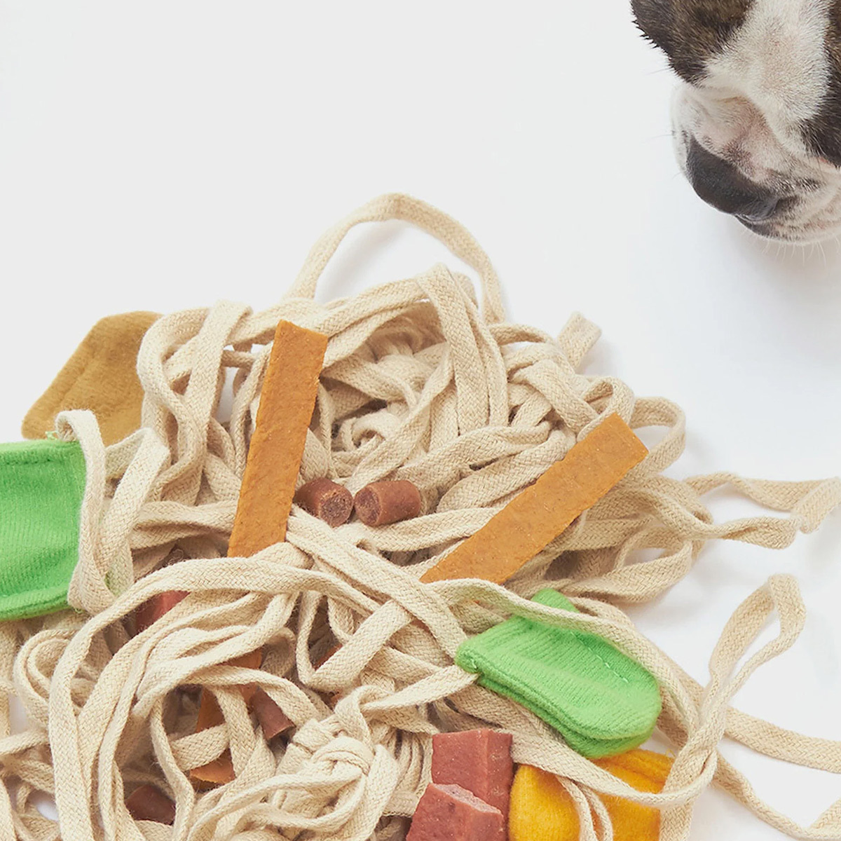 麺同士が絡まれば絡まるほどおやつをかくしやすく、ノーズワークに最適!