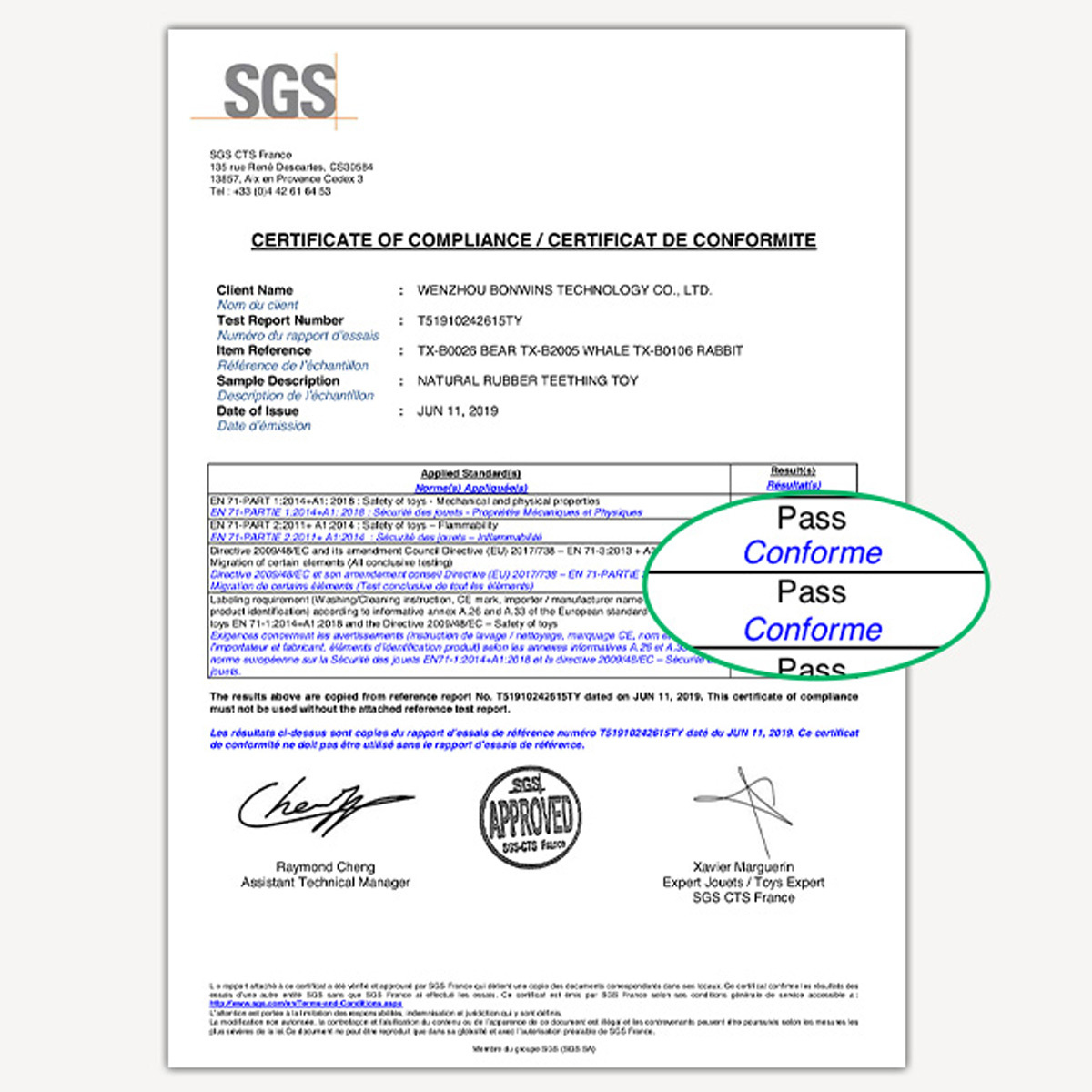 BITE MEのおもちゃは最も厳しいヨーロッパの子ども用玩具安全認証の「EN71-3」をすべて通過した安全なおもちゃです。