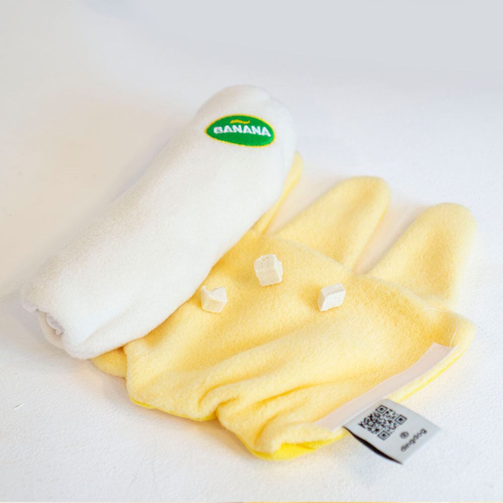 この可愛いバナナのノーズワークトイは、開くと内側に7つのポケットがあります。おやつを隠して丸めれば完成し、バナナ全体がシャカシャカ音がします。マジックテープが付いているため、固定することができ、力加減で難易度を調整できます。サイズ感もちょうど良く、飼い主と一緒に楽しめるおもちゃです。