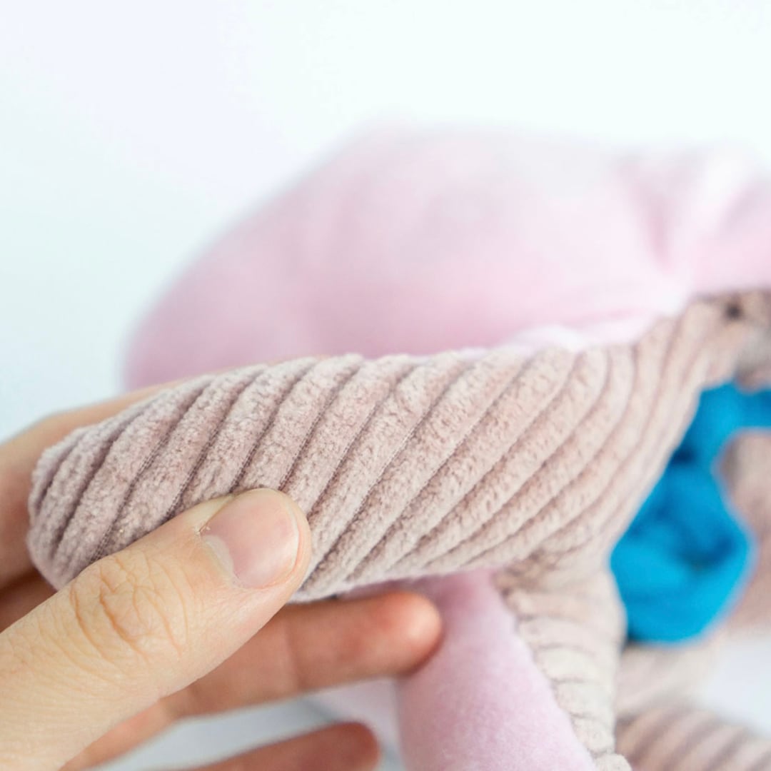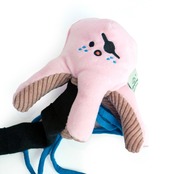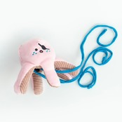 タコ ノーズワークトイは、ユニークな見た目が特徴のおもちゃです。頭の部分はシャカシャカと音が鳴り、中には青い80cmの紐とポケット付きの紐がついています。ポケット付きの紐にはおやつを隠して遊ぶことができ、さらにおやつを隠した紐を本体に入れることで難易度をアップさせることができます。また、引っ張る動作を楽しむこともできます。足の部分は分厚く作られており、壊れにくい設計です。愛犬との遊びをさらに豊かにするノーズワークトイです。