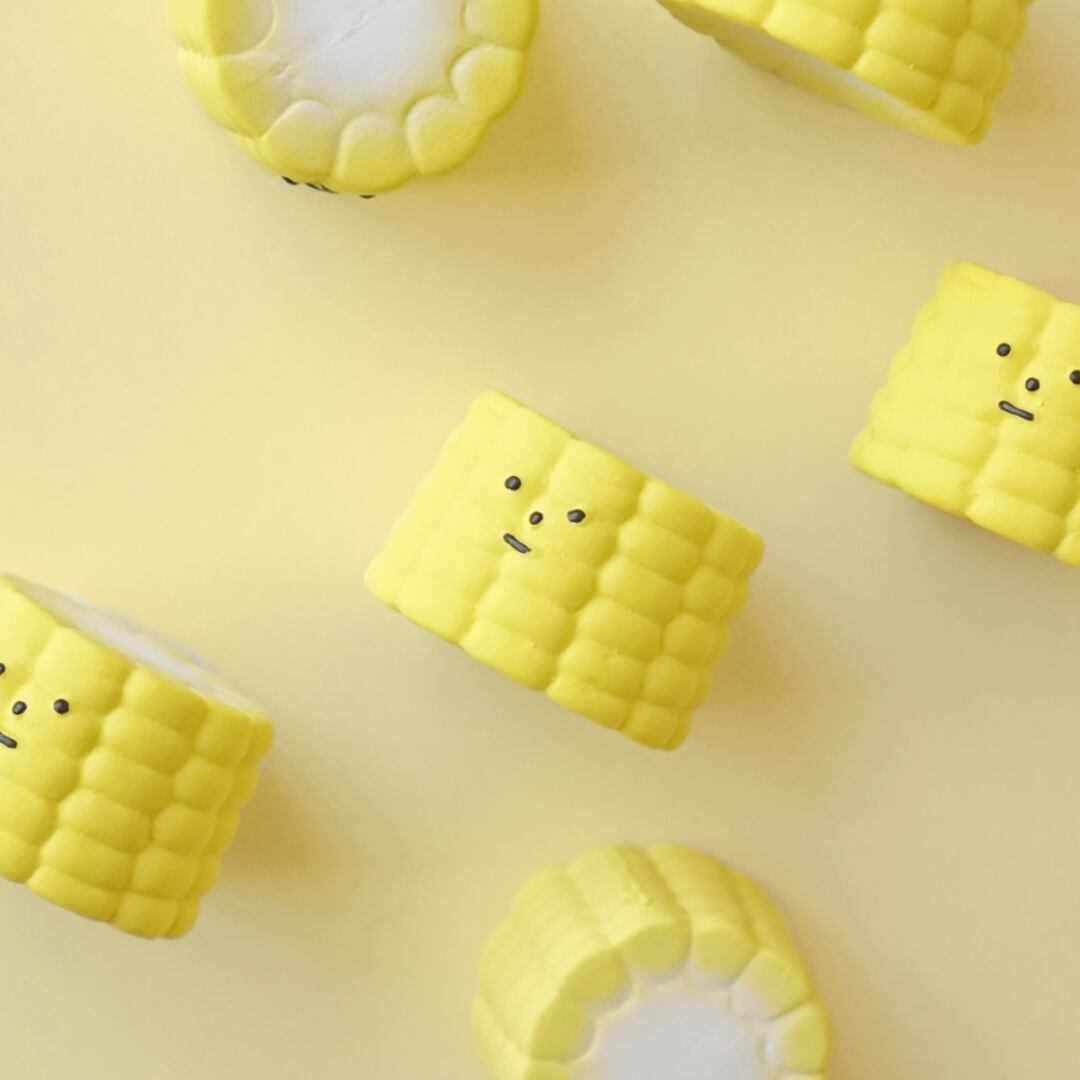 とうもろこしをモチーフにしたデザインのラテックストイです。