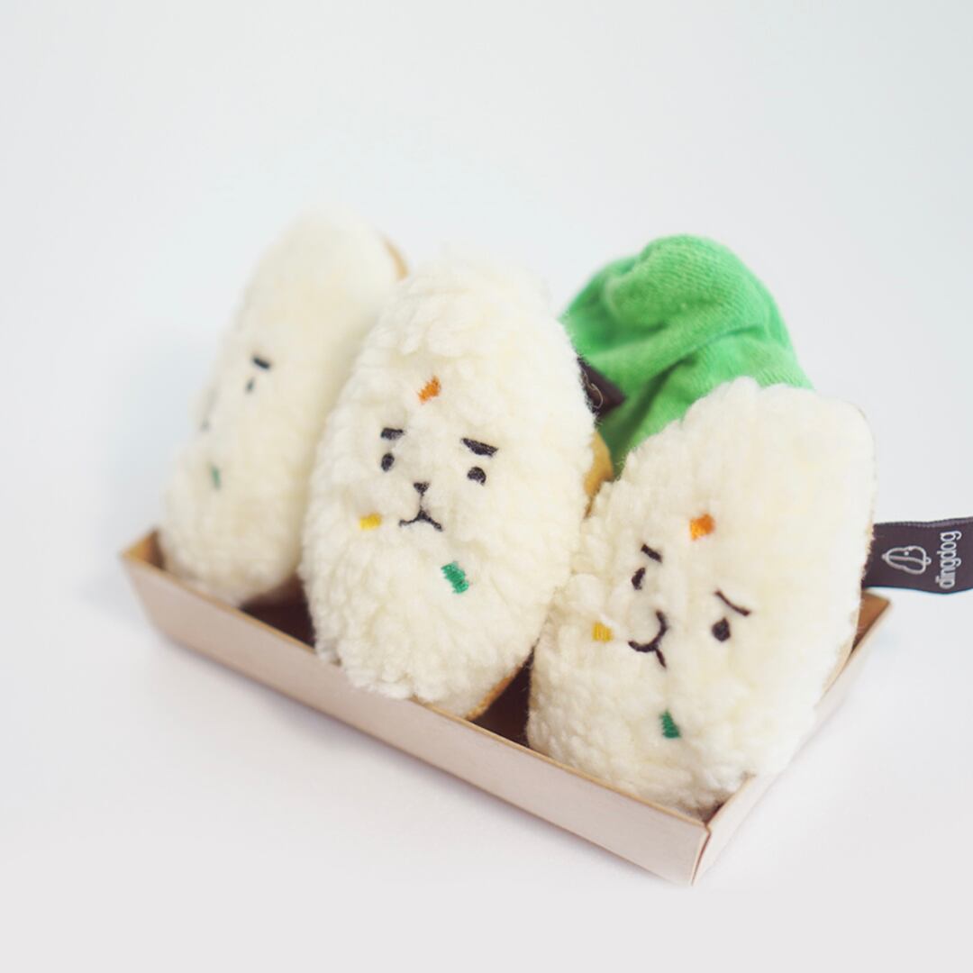 手のひらサイズで遊びやすいいなり寿司のノーズワークトイです。